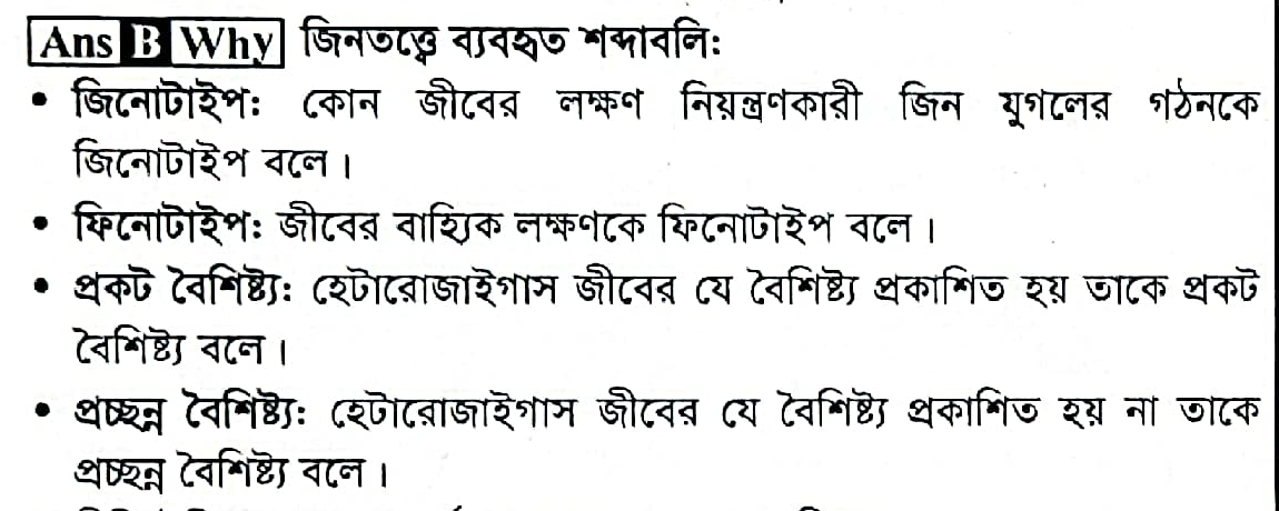 Correct Answer is: প্রকট বৈশিষ্ট্য