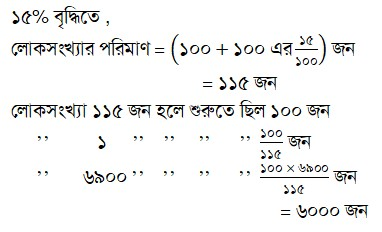 কোনো বছর একটি গ্রামে লোকসংখ্যা ১৫% বাড়ে। বছরের শেষে লোকসংখ্যা ৬৯০০ হলে বছরের শুরুতে লোকসংখ্যা কত ছিল?