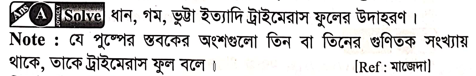 কোন উদ্ভিদের ফুল ট্রাইমেরাস?