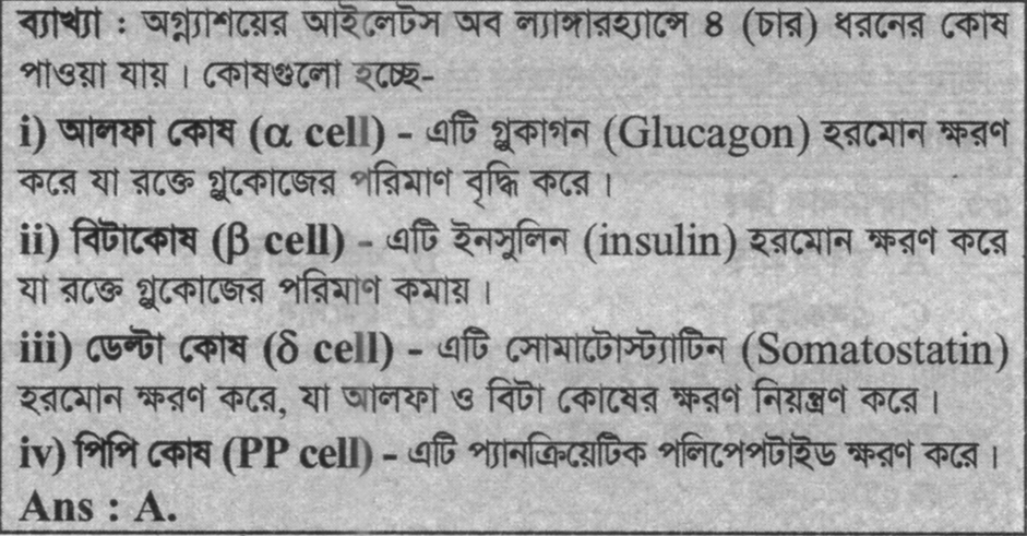 কোন কোষটি অগ্ন্যাশয়ে পাওয়া যায় না?