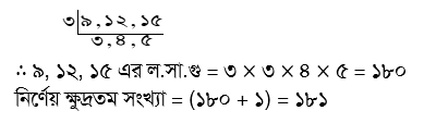 কোন ক্ষুদ্রতম সংখ্যা হতে ১ বিয়োগ করলে বিয়োগফল ৯, ১২ ও ১৫ দ্বারা নিঃশেষে বিভাজ্য হবে?