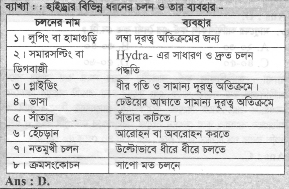 কোন চলন প্রক্রিয়ার মাধ্যমে হাইড্রা আরোহণ ও অবরোহণ সম্পন্ন করে ?
