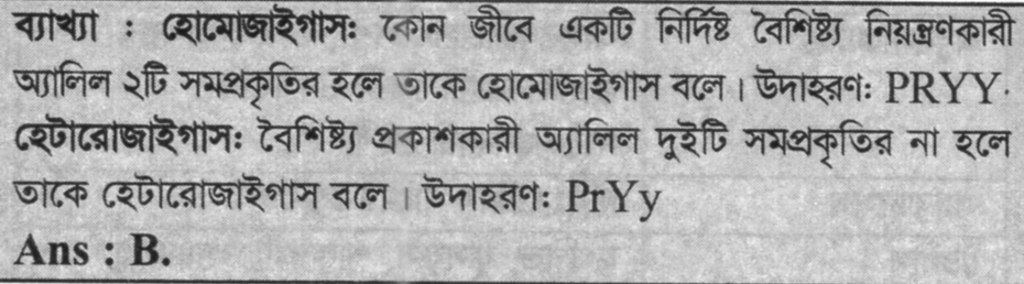 কোন জীবে একটি নির্দিষ্ট বৈশিষ্ট্য নিয়ন্ত্রণকারী অ্যালিল দুটি সমপ্রকৃতির হলে তাকে কি বলে ?