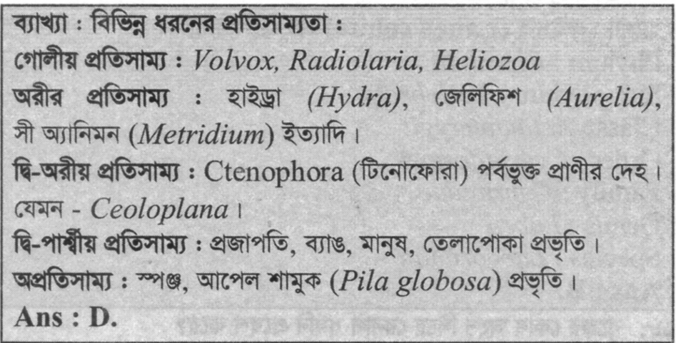 কোন পর্বের প্রাণীরা এসিলোমেট নয়? Option A: Rotifera , Option B: Porifera , Option C: Ctenophora, Option D: Cnidaria, correct answer is: Rotifera