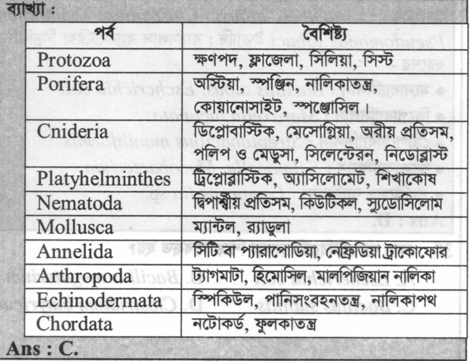 Flame cell কোন পর্বের বৈশিষ্ট্য? Option A: নিডারিয়া , Option B: নেমাটোডা , Option C: প্লাটিহেলমিনথেস, Option D: মোলাস্কা, correct answer is: প্লাটিহেলমিনথেস