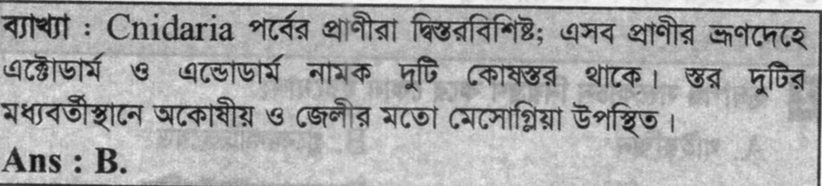 কোষের গঠনগত ভিন্নতা ও ক্রমবিন্যাস দেখা যায় কোন পর্বের প্রাণীত? Option A: পরিপেরা , Option B: কর্ডাটা , Option C: আর্থোপ্রোডা, Option D: নিডারিয়া, correct answer is: নিডারিয়া