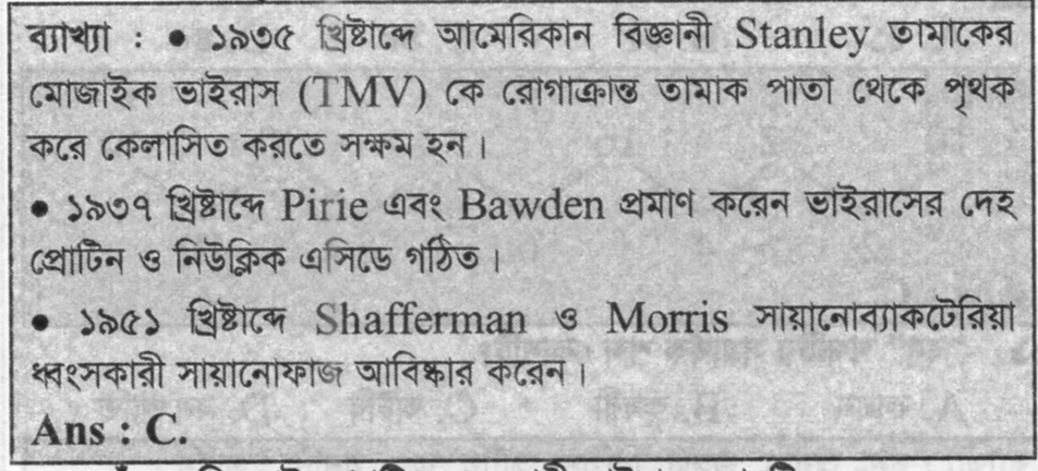 কোন বিজ্ঞানী তামাকের মোজাইক ভাইরাসকে পৃথক করতে সক্ষম হন?