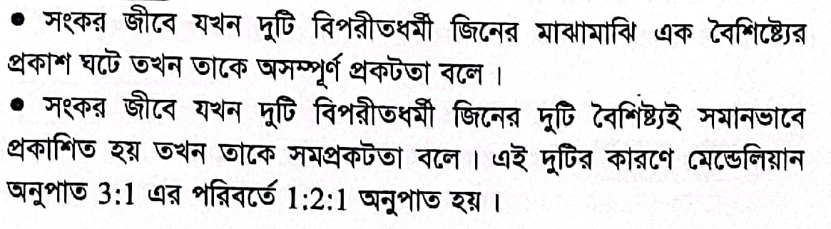 Correct Answer is: অসম্পূর্ণ প্রকটতা ও সমপ্রকটতা