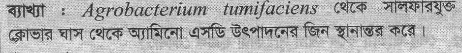 কোন ব্যাক্টেরিয়ার প্লাজমিডের মাধ্যমে ক্লোভার ঘাসে সালফারযুক্ত এমিনো এসিড উৎপাদনের জিন স্থানান্তর করা হয়?