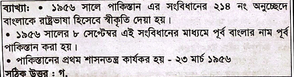 কোন সালে বাংলা ভাষাকে পাকিস্তানের একটি রাষ্ট্রভাষা হিসেবে স্বীকৃতি দেওয়া হয়?