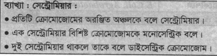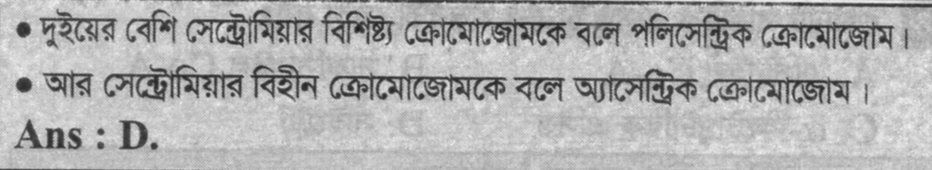 ক্রোমোসোমে কোনো সেন্ট্রোমেয়ার না থাকলে তাকে কি বলে?