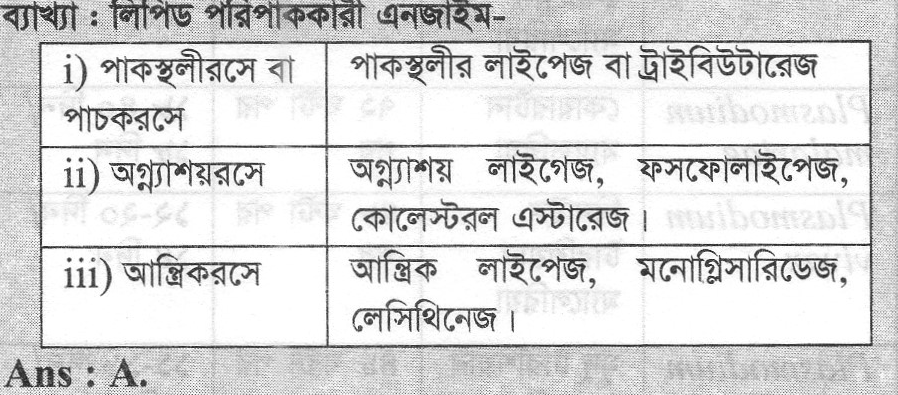 ক্ষুদ্রান্ত্রে অগ্নাশয় রসে লিপিড পরিপাককারী এনজাইম কোনটি?