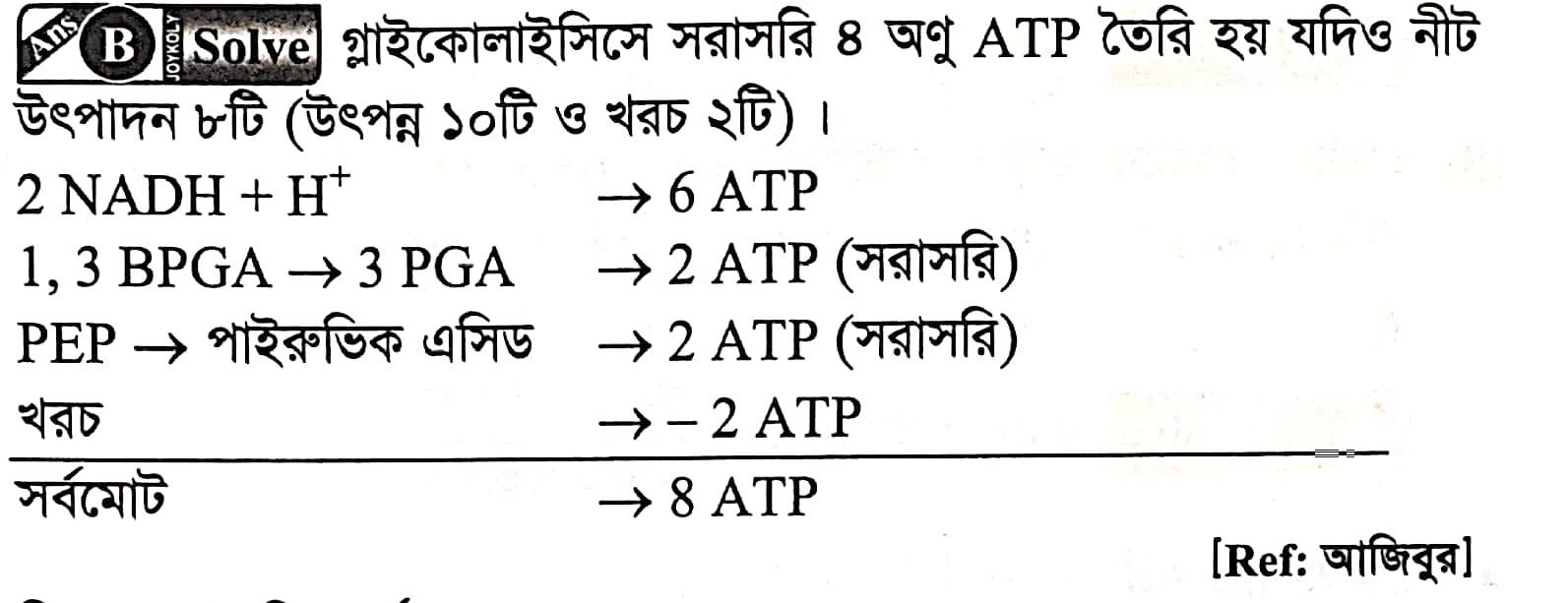 গ্লাইকোলাইসিসে সরাসরি কত অণু ATP তৈরি হয়?