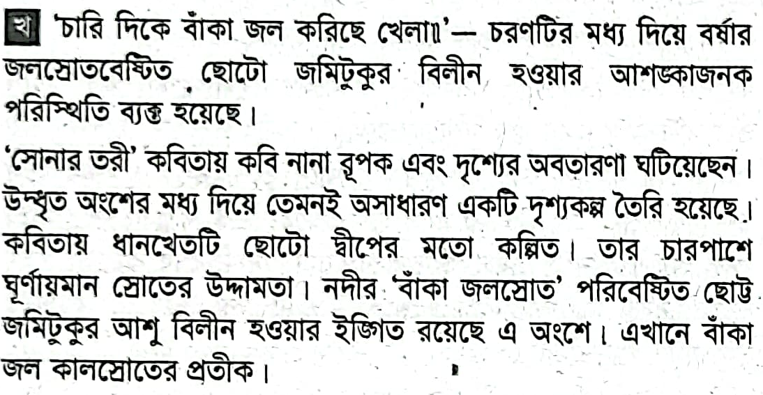 `চারিদিকে বাঁকা জল করিছে খেলা`- ব্যাখ্যা করো।