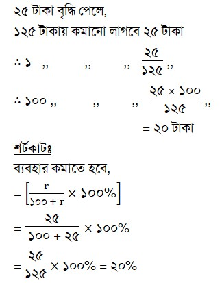 চালের দাম শতকরা ২৫ টাকা বৃদ্ধি পেলে চালের ব্যবহার শতকরা কত কমালে চাল বাবদ ব্যয় বৃদ্ধি পাবে না?