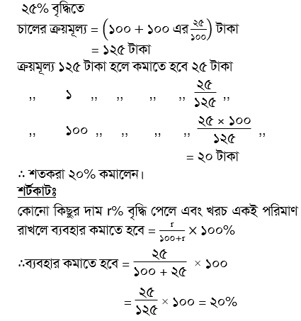 চালের দাম ২৫% বৃদ্ধি পাওয়ায় এক ব্যক্তি চালের ব্যবহার এমনভাবে কমালেন যেন চালের খরচ অপরিবর্তিত থাকে। তিনি চালের ব্যবহার শতভাগ (শতকরা) কত কমালেন?