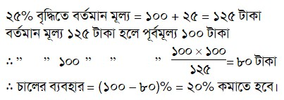 চালের দাম ২৫% বেড়ে যাওয়ায় এক ব্যক্তি চালের ব্যবহার এমনভাবে কমালেন যেন তার সাংসারিক ব্যয় অপরিবর্তিত থাকে। তিনি চালের ব্যবহার শতকরা কত ভাগ কমালেন?