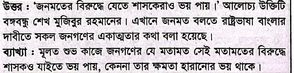 `জনমতের বিরুদ্ধে যেতে শোষকরাও ভয় পায়।`-এখানে কোন জনমতের কথা কে বলেছেন?