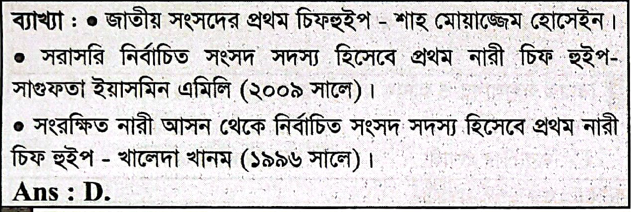 জাতীয় সংসদের প্রথম নারী হুইপ কে?