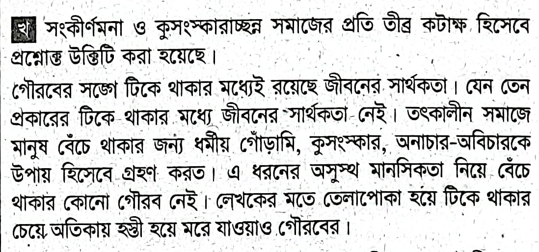 `টিকিয়া থাকাই চরম সার্থকতা নয় এবং অতিকায় হস্তী লোপ পাইয়াছে কিন্তু তেলাপোকা টিকিয়া আছে।`- বলতে কী বোঝানো হয়েছে?