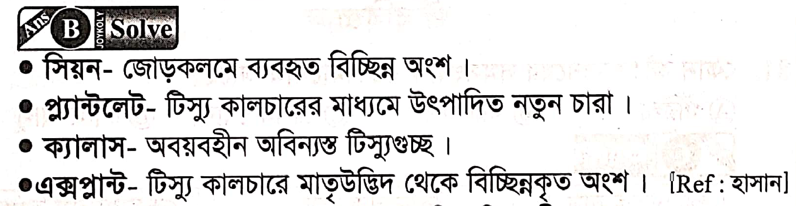 টিস্যু কালচারের মাধ্যমে উৎপাদিত নতুন চারাকে কী বলা হয়?