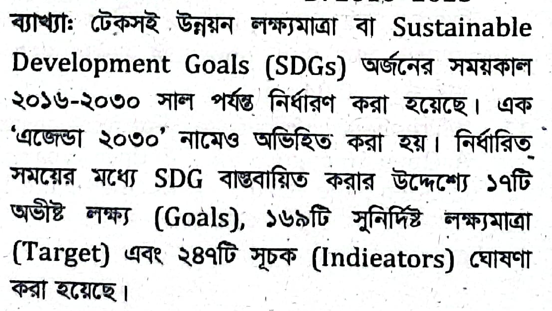 টেকসই উন্নয়ন লক্ষ্যমাত্রা (এসডিজি) অর্জনের সময়কাল কত?