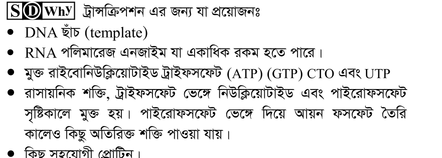 ট্রান্সক্রিপ্সনের জন্য প্রয়োজনীয় নয় কোনটি?