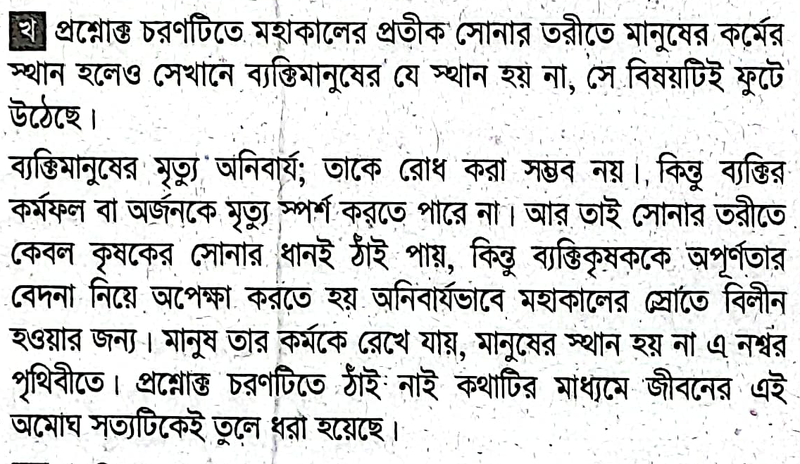 `ঠাঁই নাই, ঠাঁই নাই- ছোট সে সে তরীআমারি সোনার ধানে গিয়েছে ভরি।`- ব্যাখ্যা করো।