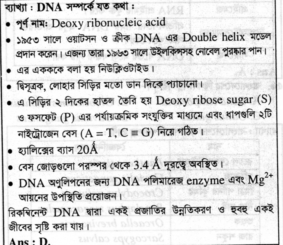 ডিএনএ এর ডাবল হেলিক্স মডেল উদ্ভাবনের জন্য বিজ্ঞানী ওয়াটসন ও ক্রিক নোবেল পুরষ্কার লাভ করেন কত সালে?