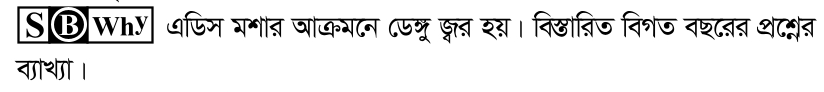 নিচের কোনটি ভাইরাস দ্বারা সংক্রমিত রােগ? Option A: ডেঙ্গু , Option B: কলেরা , Option C: টাইফয়েড, Option D: যক্ষ্মা, correct answer is: ডেঙ্গু