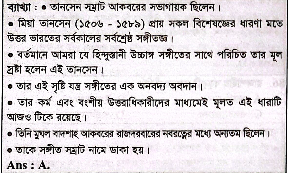 তানসেন কোন সম্রাটের সভাগায়ক ছিলেন?