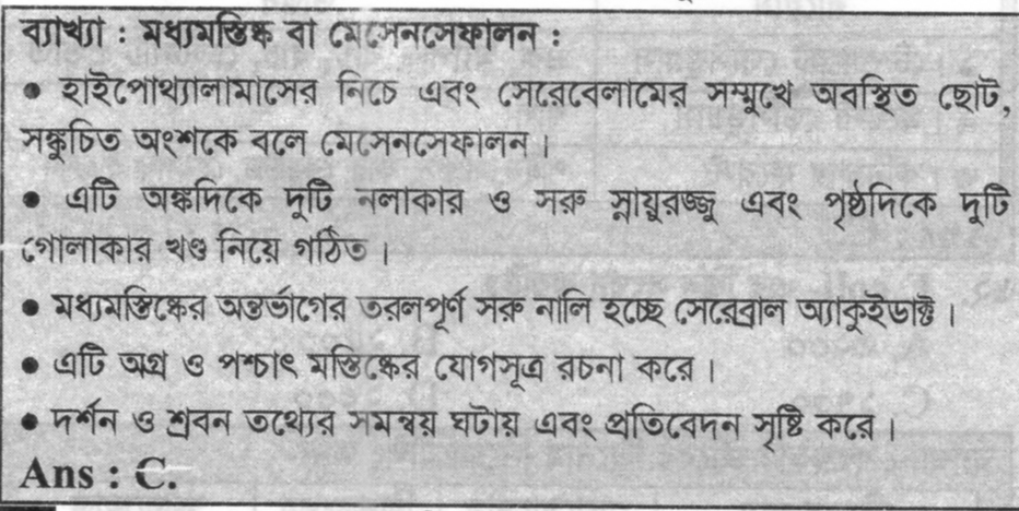 দর্শন ও শ্রবণ অংশের সমন্বয় ঘটায় মস্তিষ্কের কোন অংশ?