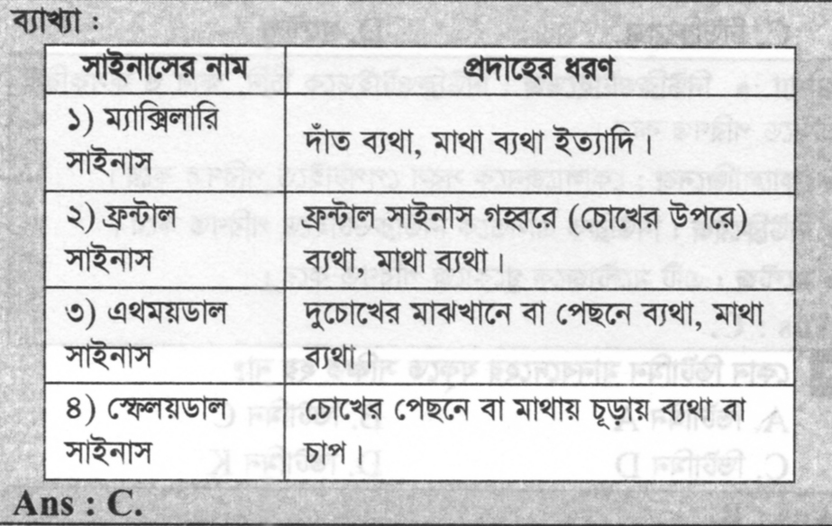 দাঁত ব্যাথা, মাথা ব্যাথা কোন ধরনের সাইনাস?