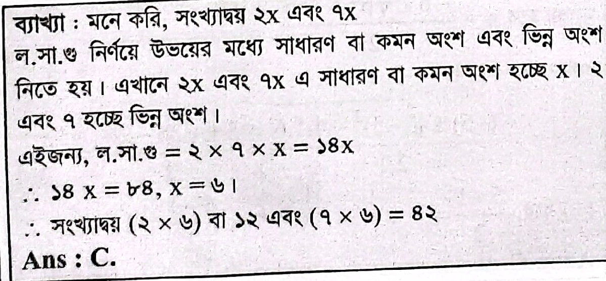 দুইটি সংখ্যার অনুপাত 2:7 এবং ল,সা,গু 84 হলে সংখ্যা দুটি কত?