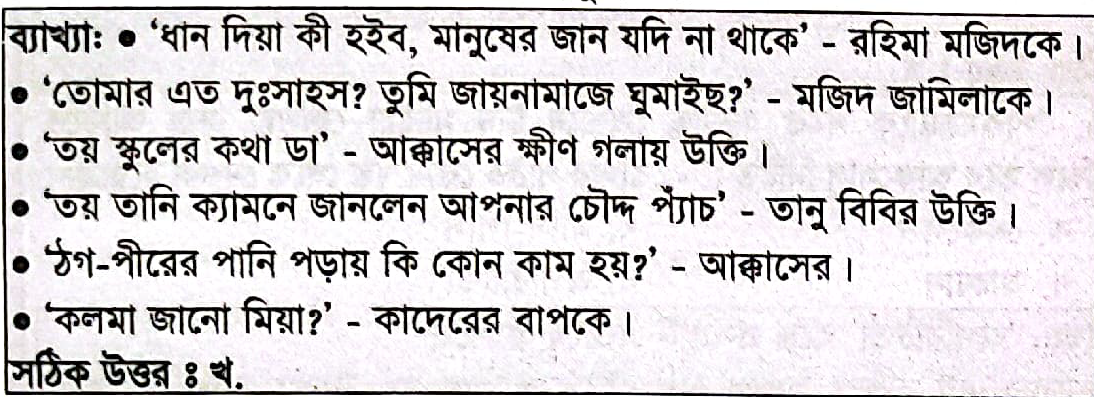 `ধান দিয়া কী হইব, মানুষের জান যদি না থাকে।` উক্তিটি কার?