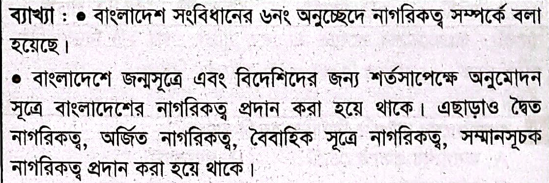 নাগরিকতা অর্জনের ক্ষেত্রে বাংলাদেশ কোন নীতি অনুসরণ করে?
