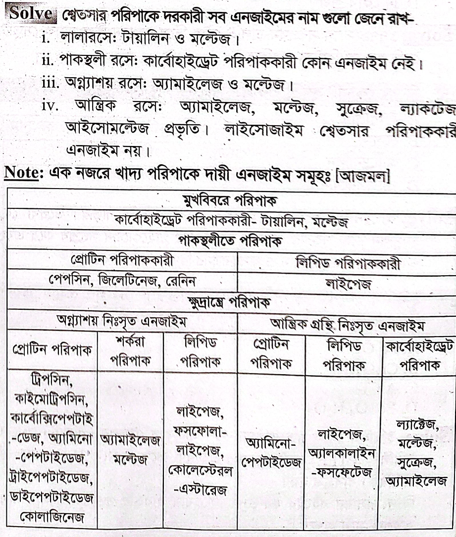 নিচের কোনটা শ্বেতসার পরিপাকে সাহায্যকারী উৎসেচক নয়?
