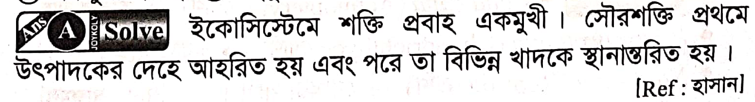 নিচের কোনটি ইকোসিস্টেমের শক্তিপ্রবাহের ধরন?