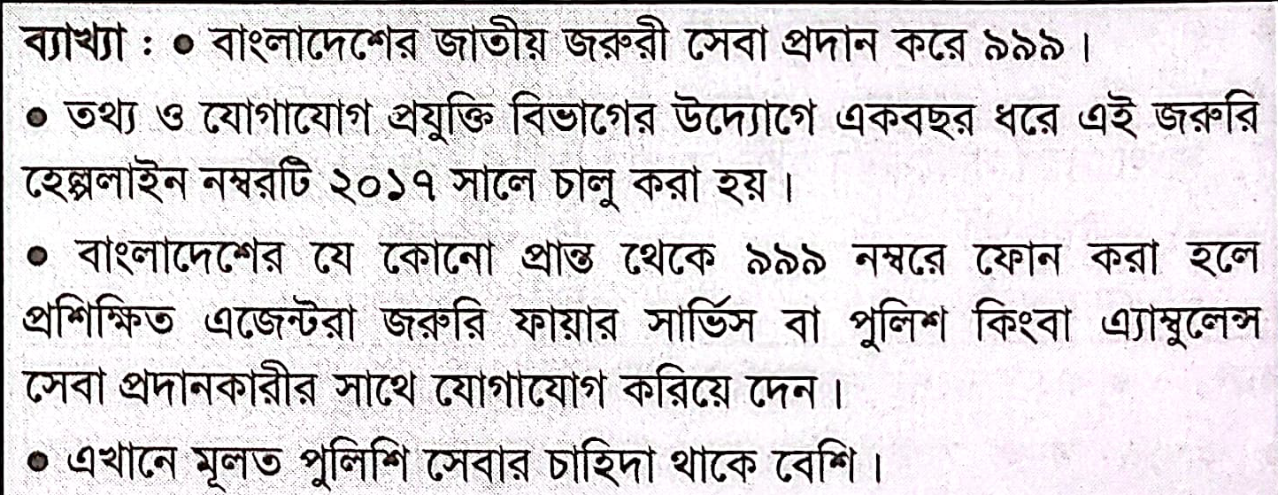 নিচের কোনটি বাংলাদেশের `জাতীয় জরুরি সেবা` প্রদান করে থাকে? [Which of the following offers `National Emergency Service` in Bangladesh?]