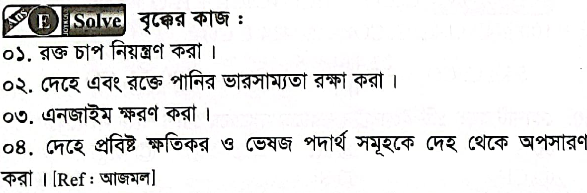 নিচের কোনটি বৃক্কের কাজ নয়?