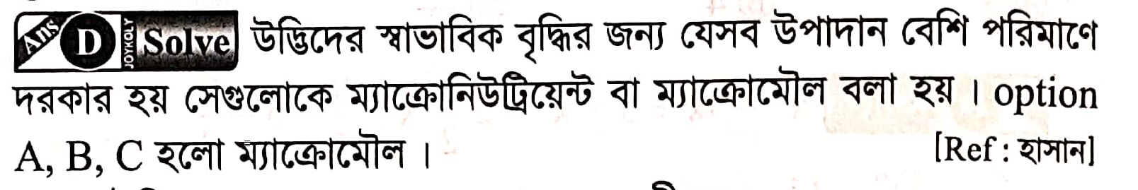 নিচের কোনটি ম্যাক্রো মৌলের উদাহরণ?