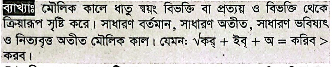 নিচের কোন ক্রিয়াপদে মৌলিক কালের প্রয়োগ আছে?