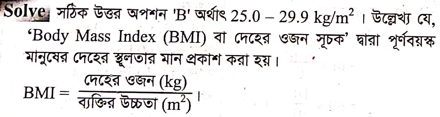 নিচের কোন BMI (Body Mass Index) অতিরিক্ত ওজন নির্দেশ করে?