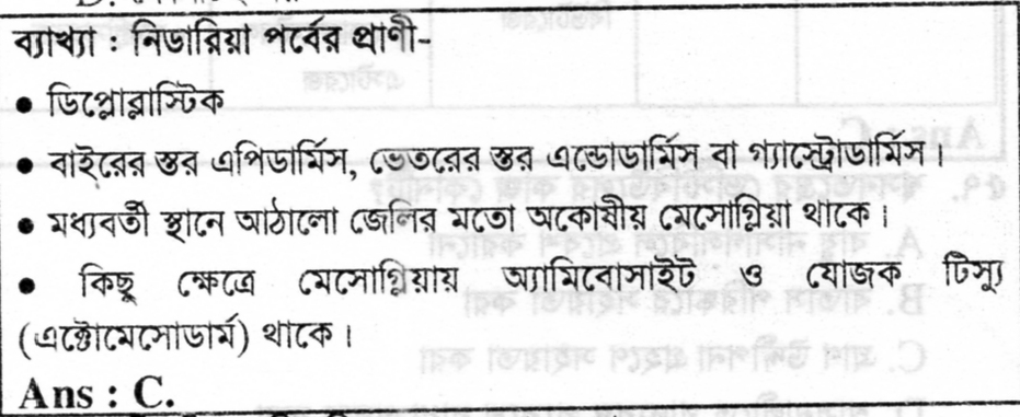 নিডারিয়া প্রাণীর দেহকোষে মেসোগ্লিয়া এর অবস্থান –