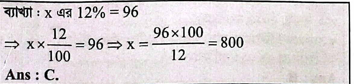 নিম্নের একটি সংখ্যার ১২% নিলে ৯৬ পাওয়া যায়,সংখ্যাটি কত?
