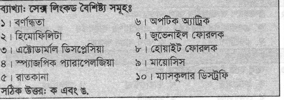 নিম্নের কোন বৈশিষ্টটি সেক্স-লিঙ্কড্ বৈশিষ্ট?