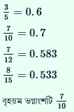 নিম্নের ভগ্নাংশগুলোর মধ্যে কোনটি বৃহত্তম?