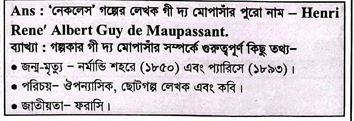 `নেকলেস` গল্পের লেখক গী দ্য মোপাসাঁর পুরো নাম কী?