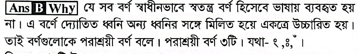 পরাশ্রয়ী বর্ণ কয়টি?