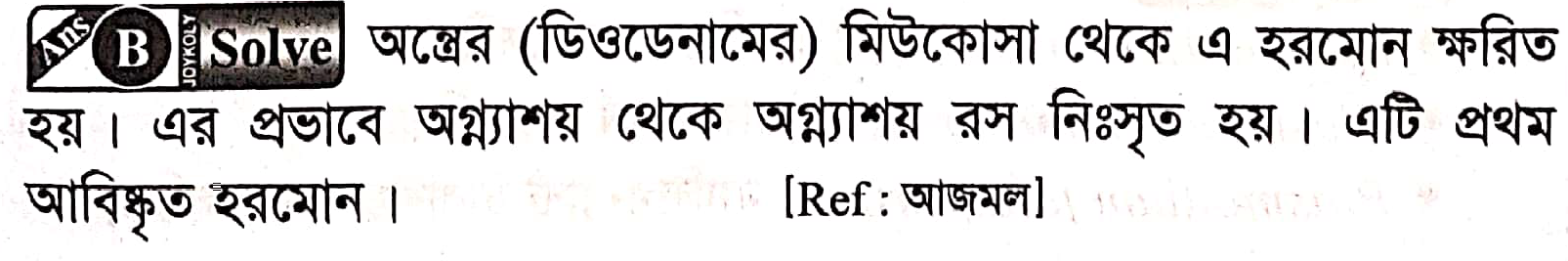 পরিপাকে ক্রিয়াশীল সিক্রেটিন হরমোন কোথা থেকে ক্ষরিত হয়?